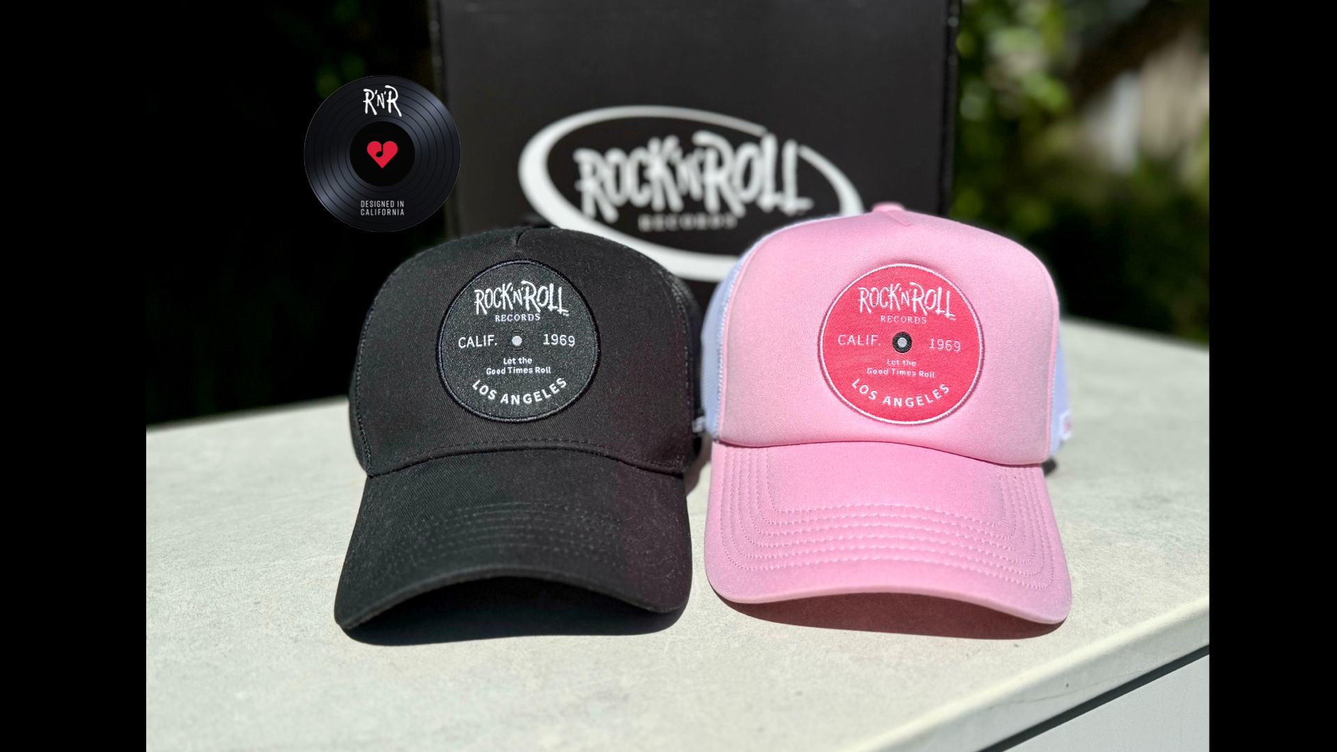Iconic Rock N Roll Records hats, in cotton twill or foam.